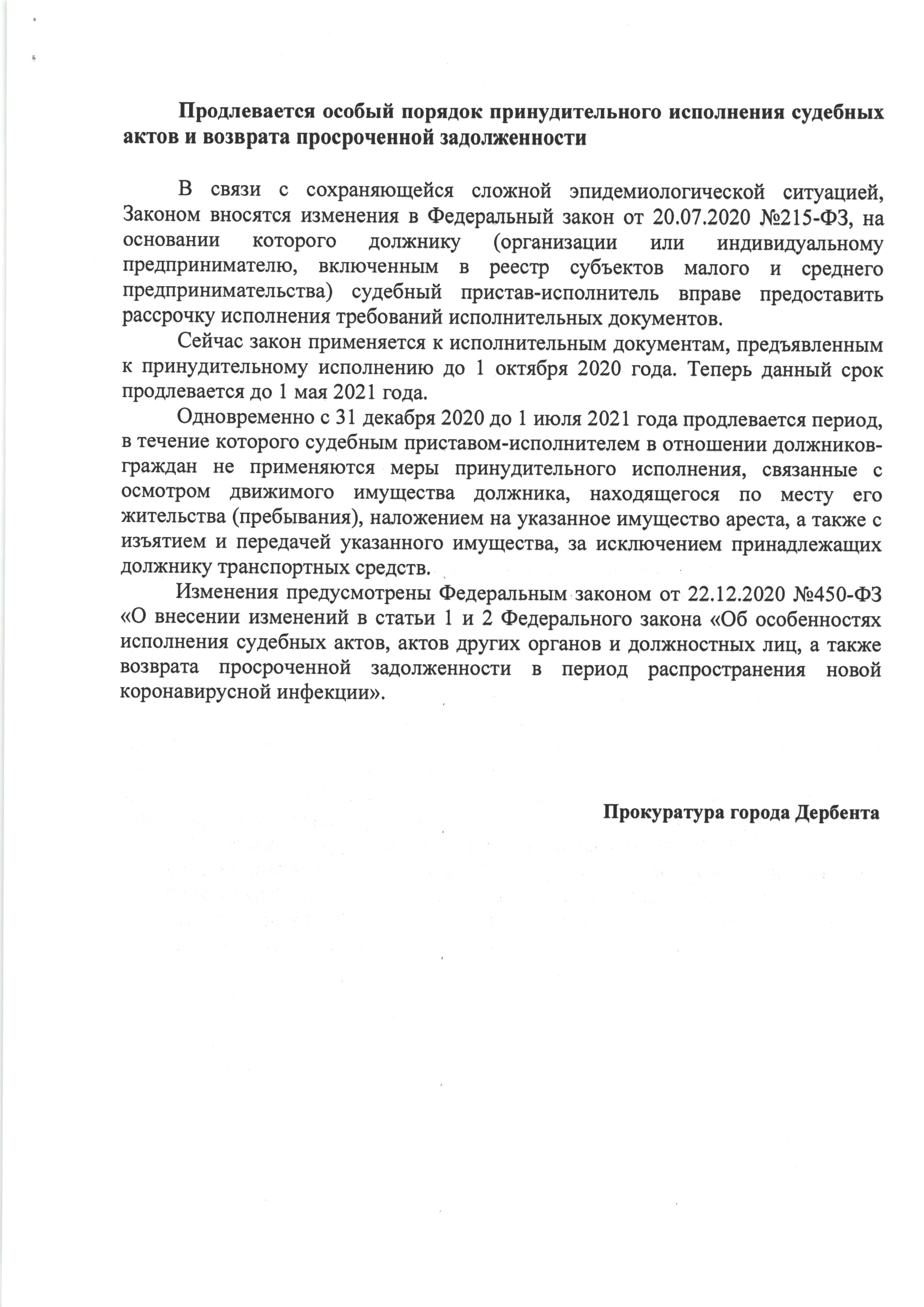 Продлевается особый порядок принудительного исполнения судебных актов и возврата просроченной задолженности (прочитать)